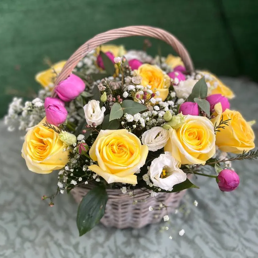 Устали от банальных букетов? Хотите преподнести что-то действительно особенное, что заставит сердце забиться быстрее? Тогда наша яркая солнечная корзина с цветами – это то, что вам нужно! Идеально подходит для любого повода – от дня рождения и юбилея до признания в любви или просто знака внимания. Корзину легко переносить и удобно размещать в любом интерьере, а цветы дольше сохраняют свежесть благодаря специальной флористической губке.