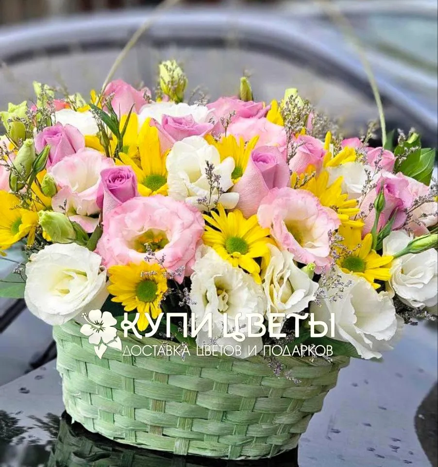 Корзина роз и эустом Элегантная Симфония