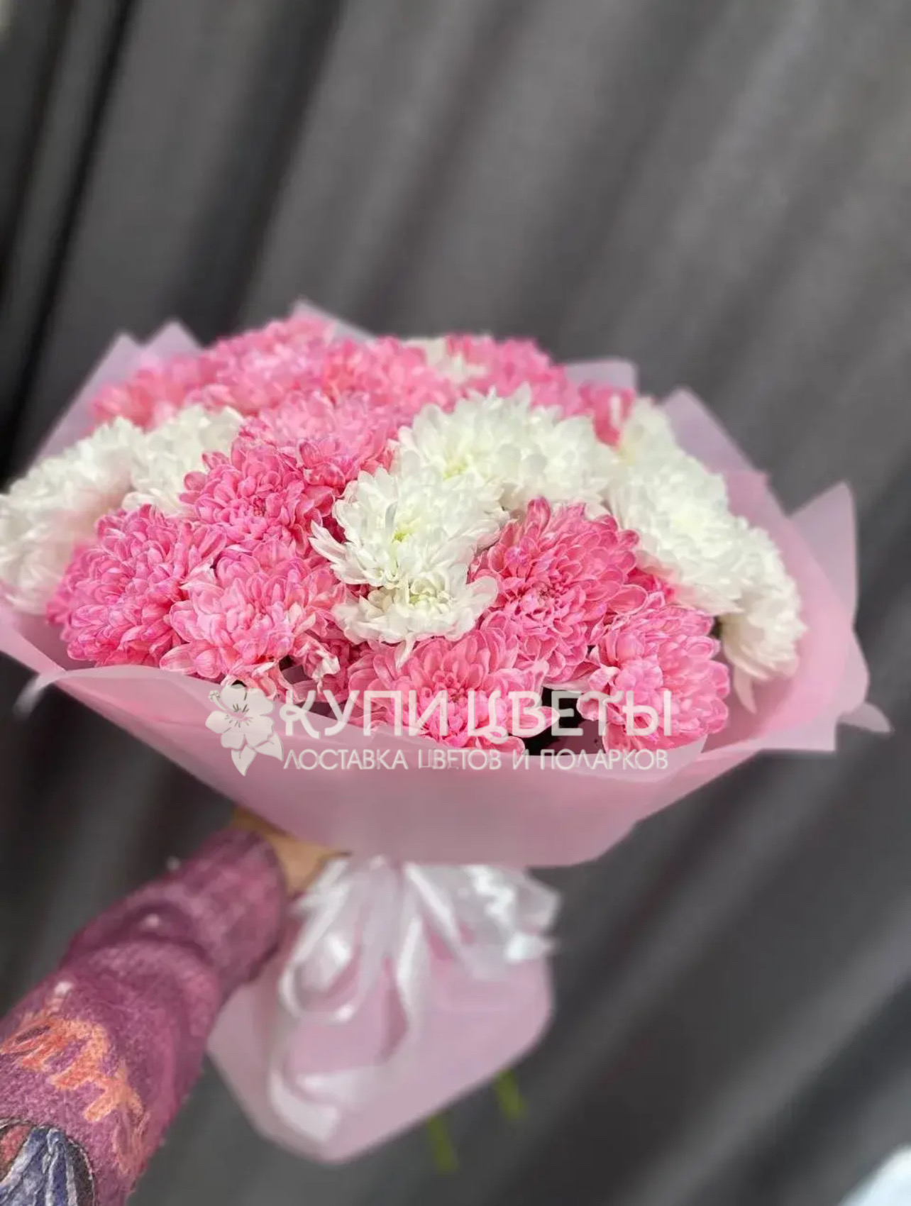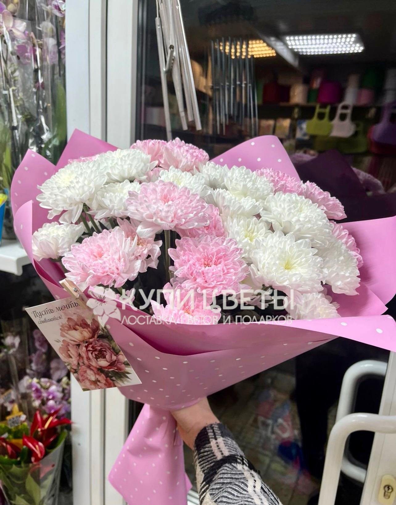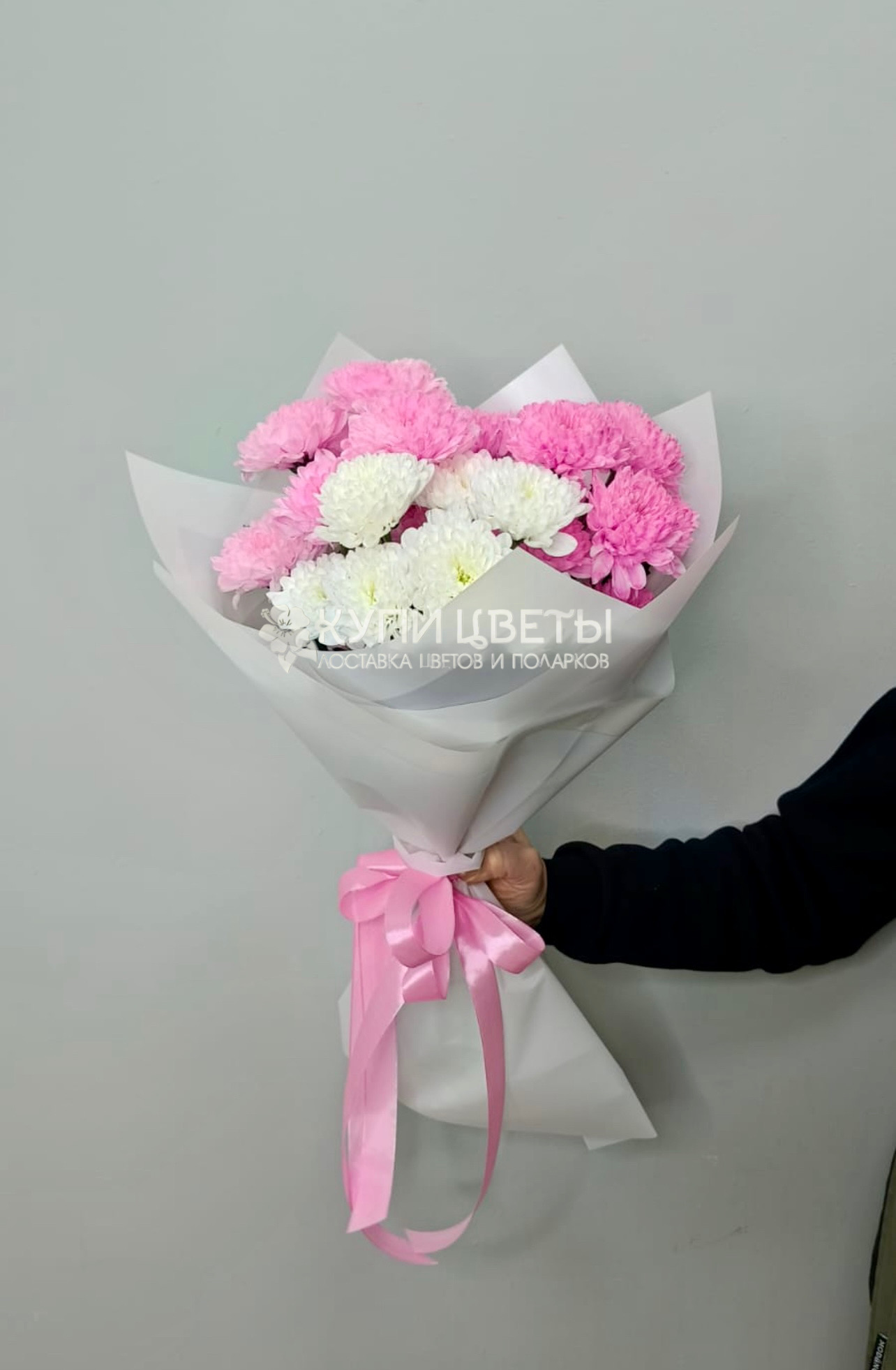 Состав букета: Кустовые хризантемы,упаковка,лента