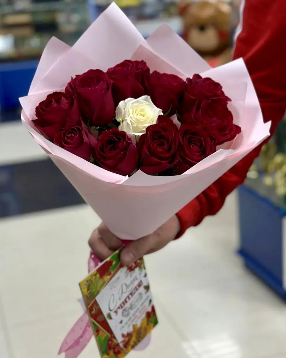 роза-11шт,упаковка, лента