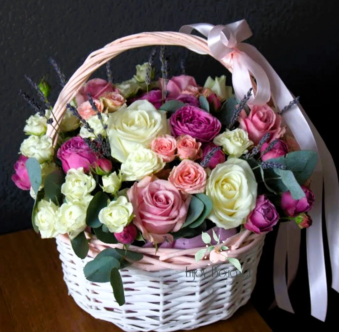 Корзина с розами в нежных тонах — это идеальный подарок для любого повода. Эти великолепные цветы олицетворяют любовь и нежность, а их мягкие оттенки создают атмосферу гармонии и уюта. Розы в пастельных цветах, таких как кремовый, розовый и персиковый, прекрасно сочетаются друг с другом, создавая эффектный букет.