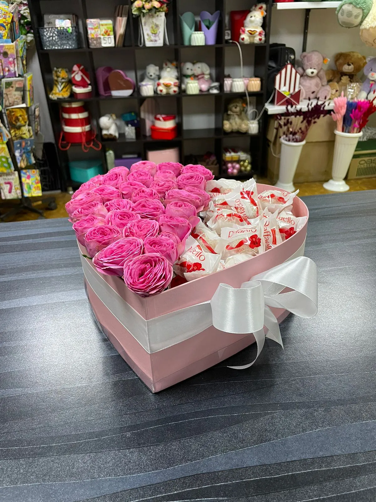 - Премиум - роза - 15 шт., Рафаэлло, коробка, оазис