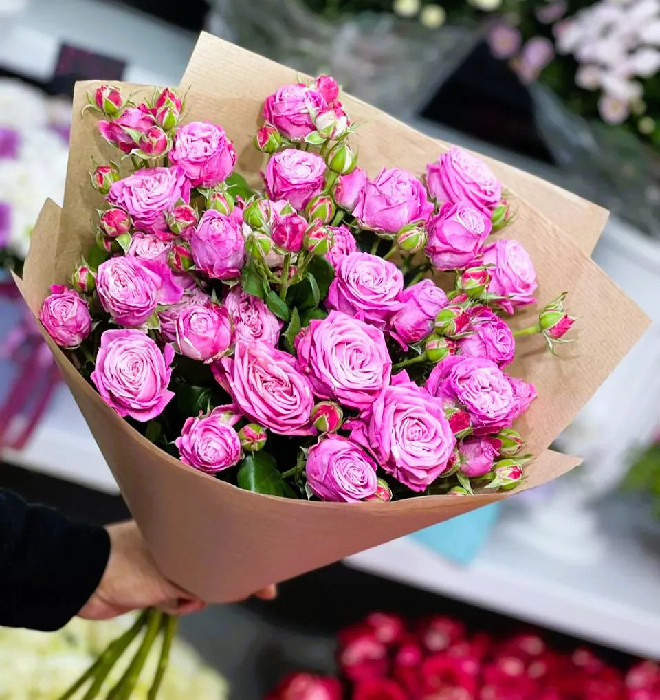 • Премиум - кустовая роза - 15 шт ,упаковка,лента